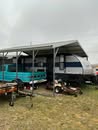 Tilt trailer; garden dump trailer; 2021 Forest River Grey Wolf 29’ Travel Trailer; 2021 Diamond C 16’ Car Trailer; several smaller trailers