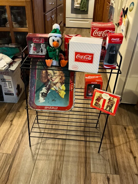 Concession Stand items from Hoof and Horn Concessions from the KS State Fair, popcorn machine, pop machine, hotdog warmers, juice dispensers, picnic tables, and more; Household small appliances; Pasta maker; Crafters items; Sewing items; Party light candle holders, Office supplies including cash registers, 10-key calculators, exe; Flower pots; yard ornaments; ice cream maker; assorted bikes; CB radios; old toy cars; wash tub; Coleman lanterns; crock pots; golf clubs; Maytag washing machine; potato/onion bin; milk can; several rain trains; John Wayne sculpture glass globes; antique glassware; diecast cars; Coke Cola items; Bud light led; antique clocks; coolers, dog kennel; entire house full of assorted lots