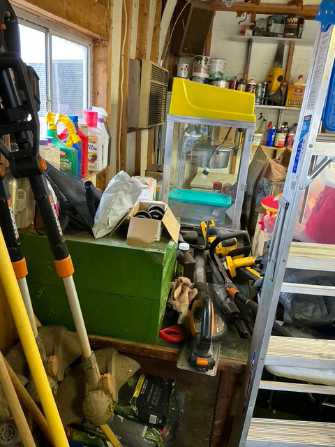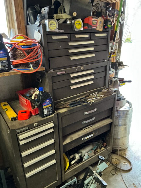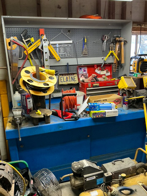 Shop vices; numerous tool boxes; shop bench; 100s of hand tools; numerous floor jacks; battery chargers; drill press; numerous air compressors; several chainsaws; extension cords; dollies; ladders; weed eaters; leaf blowers; hedge trimmers; tables; angle grinders; shop vac; battery hand power tools; table saw; shop fans; shop lights; wheel dollies; shovels; rakes; log chains; sledge hammers; spools of assorted wire; bench grinder; receiver hitches; air bubbles; 10 inch radial arm saw; paint sprayers; upright air compressors; planer; routers; scroll saw; chop saw; belt sanders; several assorted shop clamps; Dremel; Brad Nailers; levels; power washers; water pump; post driver; 11HP Briggs and Straton motor; mini tire changer; firewood rack; cement bricks; many more items not listed
